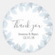 Thank you stickers with customised details for your party favours, features watercolor blue leaves. Matching designs are also available.