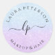 Blue purple glitter handwritten script calligraphy classic round sticker