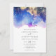 Blue Purple Gold Watercolor Ink Wash Wedding Invitation
