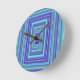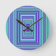 Blue Purple Green Rectangles Geometric Art Round Clock