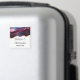 A wedding magnet with an abstract design with blue and purple layers with faux gold foil ribbons in between.