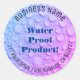 "Water Proof Product" Sticker with bold blue text and blue and purple water drops background or Personalise with your message and photo. Place on bottles or packages, etc. Click “Customise” to change colours and type styles.