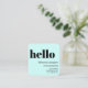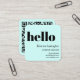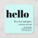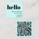 Customisable turquoise aquamarine blue business card, with HELLO typography and name, profession, website and social media details. On the back there is a scannable QR code. To generate a new QR code on the design that links to your own website, click on the "personalise this template" Add your URL address or social media handle in the area provided and a QR code will be generated just for you.