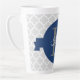 Enjoy your latte or morning coffee with a Blue Quatrefoil Personalised Latte Mug. Mug design features a simple quatrefoil background and fancy emblem to personalise with your name and monogram. Additional gift items available with this design as well as a variety of colours.