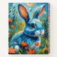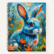 A cute, blue rabbit sits among flowers on this charming back-to-school notebook for a child.