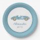 Blue race car birthday paper plate