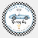 Blue race car Boy Birthday Thank you for racing by Classic Round Sticker