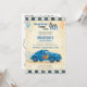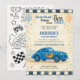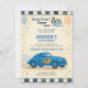 Celebrate your little racer’s big day with this fun watercolor design featuring a blue car, playful balloons, and a chequered border. Perfect for a joyful second birthday filled with laughter and high-speed excitement.