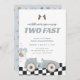 Vintage Race Car 2nd Birthday Invitation for Boy Blue Race Car Two Fast Second Birthday Invite