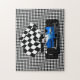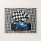 Blue Race Car with Chequered Flag Jigsaw Puzzle