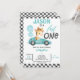 Blue Racing Car Balloons Giraffe 1st Birthday Invitation