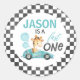 Blue Racing Car Giraffe 1st Birthday Classic Round Sticker