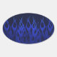 Blue Racing Flames on Carbon Fibre Print Oval Sticker