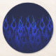 Blue Racing Flames on Carbon Fibre Print Round Paper Coaster
