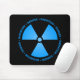Danger - Radiation - blue lettering and radiation symbol with a black background.