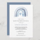 Baby Shower By Mail invitation featuring watercolor blue rainbow. A baby shower by mail invitation is perfect for those that live a long distance from loved ones, but still want to shower the parents to be with love and gifts to prepare for the arrival of their baby. Personalise with your information or click "click to customise further" to adjust font type, size, colour.