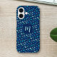 Personalised navy blue raindrops iphone case with name monogram or initial. Lovely water droplets in various shades of blue, teal and turquoise dance across the canvas. Customise this lovely baby blue rainfall pattern with your name or surname initial.