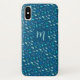 Personalised blue raindrops iphone case with name monogram. Lovely water droplets in various shades of blue, teal and turquoise. Customise this lovely blue aqua pattern with your name or surname initial.