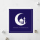 Ramadan Mubarak greeting card gift to give to your loved ones to begin this Islamic holy month. This card has a simple navy blue background with a white script font written below the design in the centre. There is a crescent moon with a little mosque vector with one onion dome and one minaret. There is a minimal delicate frame as the border for this custom template. Modern. Basic. On the back, there is prayer wishing you have a blessed and peaceful Ramadan Kareem. You can select which paper type you want. Ayesha Altaf copyright. Muslim holidays.