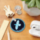 A simple, glowing, blue-and-white line image of a Raven (Corvus corax) on a starry background image. Add your own text.