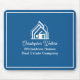 This professional realtor mousepad is custom made with your real estate company name under the modern cursive script for an open house. These elegant custom blue realty business promotional items feature a house logo image for home builder or realty agent company marketing.