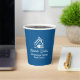 This professional realtor paper cup is custom made with your real estate company name under the modern cursive script for an open house. This chic custom blue realty business party decor features a house logo image for home builder or realty agent company marketing.