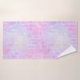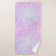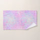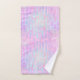 Towel set with an abstract background pattern. Pink purple and blue watercolors make up this artistic design which features vertical rectangle shapes on a soft mottled background.