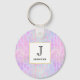 Cute key chain with an abstract background pattern. Pink purple and blue watercolors make up this artistic design which features vertical rectangle shapes on a soft mottled background. A square layered over top with a faux gold foil border, your personalised text inside.