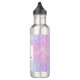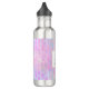 Water bottle with an abstract background pattern. Pink purple and blue watercolors make up this artistic design which features vertical rectangle shapes on a soft mottled background. A square layered over top with a faux gold foil border, your personalised text inside.
