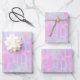 Wrapping paper sheets with an abstract background pattern. Pink purple and blue watercolors make up this artistic design which features vertical rectangle shapes on a soft mottled background.