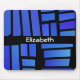 A geometric pattern with varying sizes of rectangle shaped tiles in pretty shades of blue and purple on a black background.
