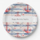 Blue Red Anchors Floral Stripes Beach Birthday Paper Plate