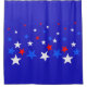 Five pointed star pattern in blue, red and white colour on blue background. Abstract space design.