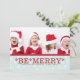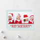 RED, BLUE AND WHITE, BE MERRY HOLIDAY PHOTO CARD. ELKE CLARKE© FOR MONOGRAM GALLERY. Send out your Christmas greetings to your friends and family using this fun, contemporary holiday card with photo. "BE MERRY". The light blue snowflake background pattern adds a touch of whimsy to your personalised red and blue Christmas Card. Add your own photo, greeting message and text on the front of the card, such as your family name, or your monogram initial or your first names. The choice is yours to be creative and make it all your own. Replace the sample photo with your own family christmas portrait.