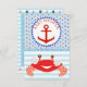 Personalise this adorable blue cute crab baby shower invitation with your baby shower's information in the customise area. Blue and red ancrhors nautical themed striped, with cute crabs, cute for a nautical, beach or oceanic themed baby shower.