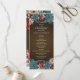 Abstract aqua blue, red and cream floral background. Wedding program template in grunge or retro style. Elegant pattern with floral illustration in vintage style. Size 4" x 9.25", one side version. Other colour combinations and further customisation available by request.