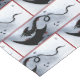 Black tribal dragon with a blue grey backdrop with small red flowers and red border.