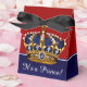 Elegant royal blue, red and gold prince crown baby shower favour boxes. These beautiful blue red, and gold prince baby shower favour boxes can be personalised with text and you can change the ribbon colour.