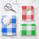 These sheets of wrapping paper for holidays, birthdays & other special occasions have a buffalo plaid pattern in colours of blue, red and green against a white background.