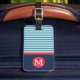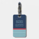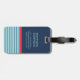 Blue Red Stripe Monogram Name Address Luggage Tag