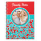 Keep track of all your family's important information with this modern and trendy turquoise blue, red, and white floral damask notebook with a template box for you to add your own photo and text to. If you need help customising this item, please email niteowlstudio@gmail.com for assistance.