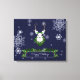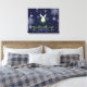Make your walls festive this holiday season with a Blue Reindeer Stretched Canvas Print.  Canvas print design features a festive reindeer wearing a Christmas wreath  adorned with holly berries and falling snowflakes and a holiday greeting box decorated with holiday garland.  Additional gift and holiday items available with this design as well.
