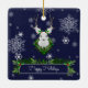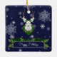 Decorate your tree this holiday season with a Blue Reindeer Ceramic Ornament. Ornament design features a festive reindeer wearing a Christmas wreath adorned with holly berries and falling snowflakes and a holiday greeting box decorated with holiday garland. Additional gift and holiday items available with this design as well.
