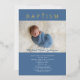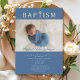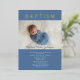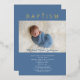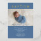 Personalised Blue Religious Cross Boy Baptism Photo Gold Foil Invitation.