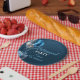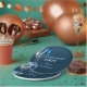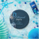 A stylish blue balloon and gift party paper plate for a retirement party, farewell party celebration. Features blue and silver balloons with blue and white text.