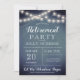 Rustic retirement party invitation featuring string lights and a combination of script and open face typography on a blue ombre background. Perfect for men's or women's retirement celebration. For further customisation, please click the "Customise it" button and use our simple design tool to modify this template.