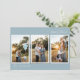 Blue Retro Boho Minimalist Five Photo Collage Holiday Card