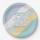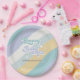 Blue Retro Groovy Baby Shower Paper Plate