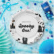 Blue Retro Grooy Spooky One Halloween 1st Birthday Paper Plate
