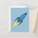 Blue Retro Rocket Ship Outer Space Simple Modern Postcard